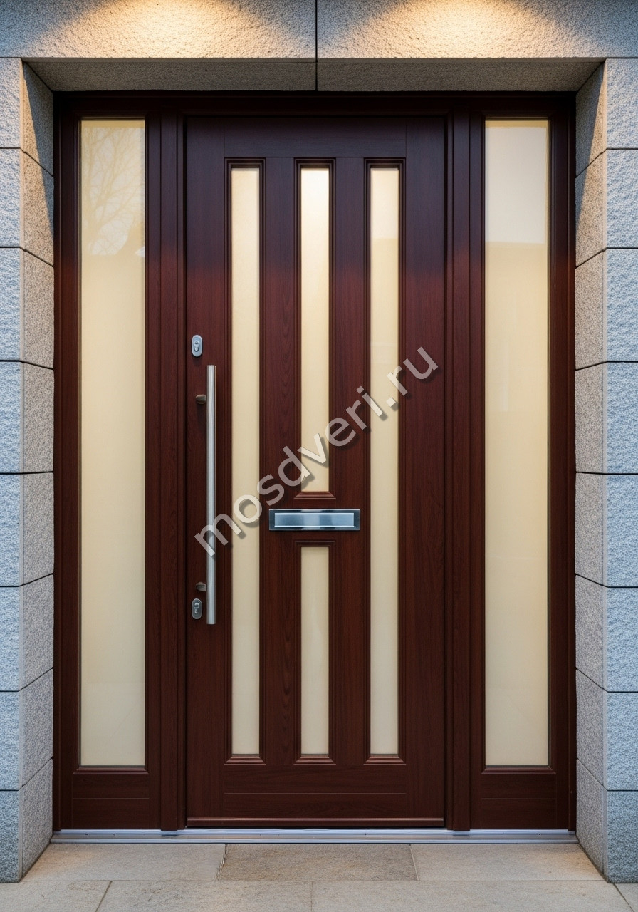 Дизайнерская входная дверь со стеклом коричневая — объединяет стильный внешний вид и высокую надёжность.