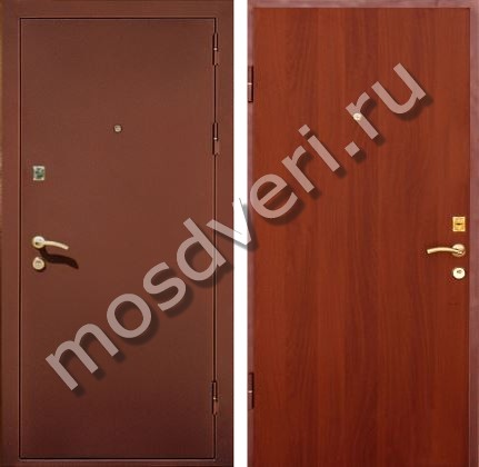 Наружная дверь с порошковым напылением и ламинатом внутри — совмещает эстетичность и высокую надёжность.