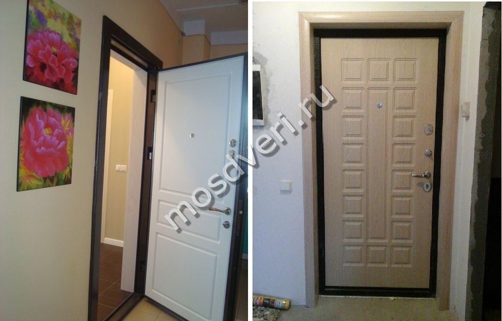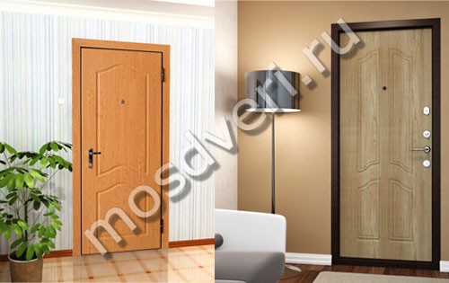 Прочность плиты МДФ недостаточна для полной защиты дома от взлома. Поэтому модели компании Мосдвери собраны на стальном каркасе из труб квадратного сечения и усилены железным листом толщиной 2 – 3 мм. Полости каркаса заполнены минеральным или полимерным утеплителем.